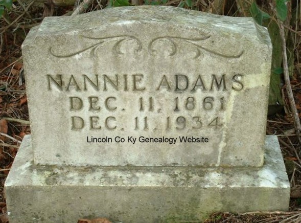 w/o 1) Edward Keelher w/o 2) George M. Adams. d/o King David Noaks & Margaret Blankenship Adams.