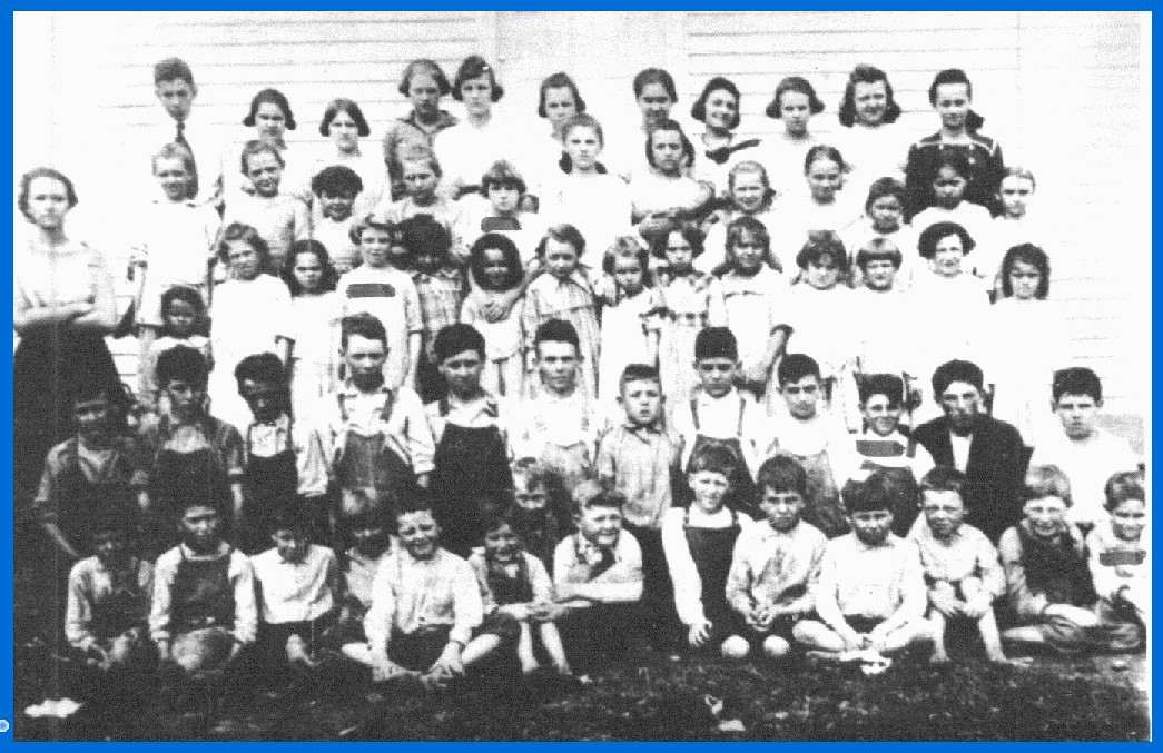 This is a group photo of my mother's Turnerville school class of 1917. I regret that the Turnerville School picture is poor, but it is very old. My mother had put a small swatch mark beneath her own, and her sibling pictures. Lillian, Lucille, Bennie, and Walter (front extreme right). Mother (most center) has her arms around her girlfried named Jewell Holtzclaw (sp?)
