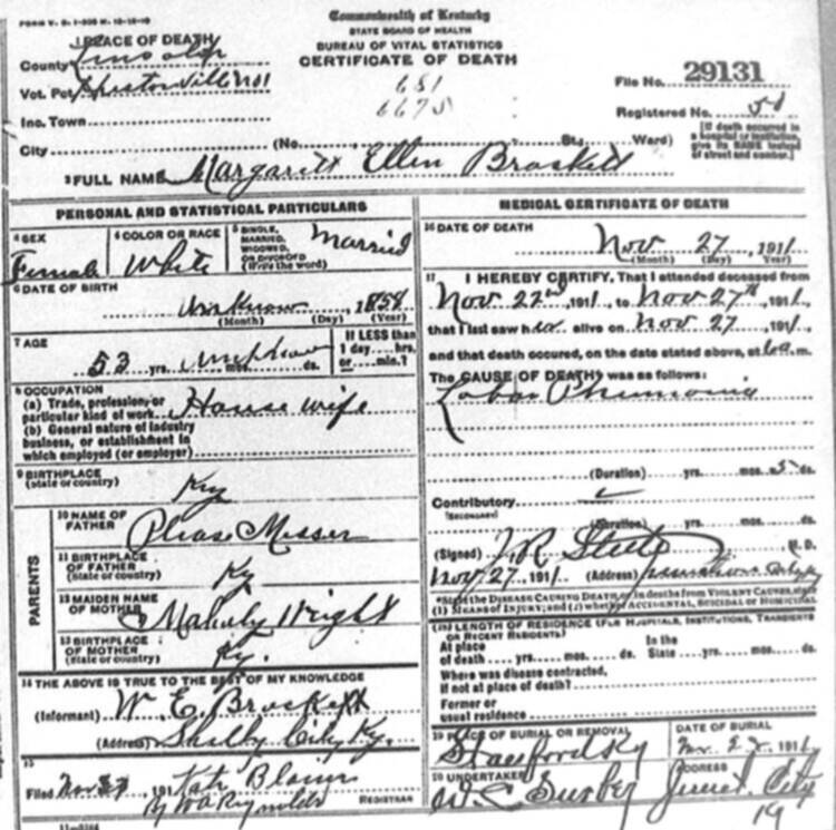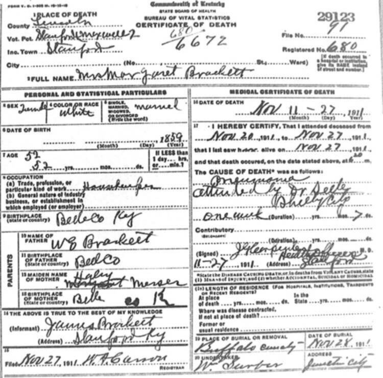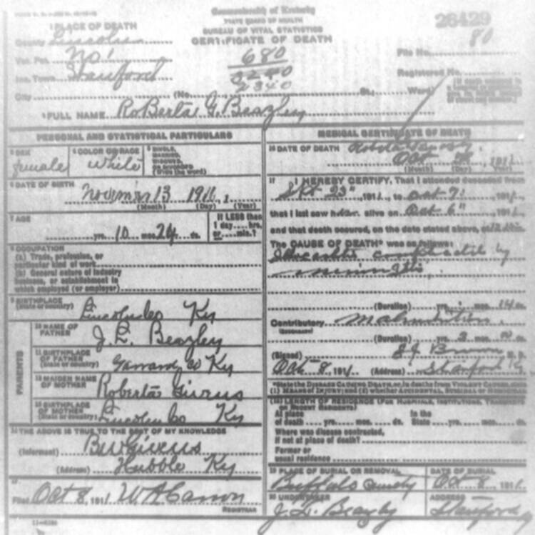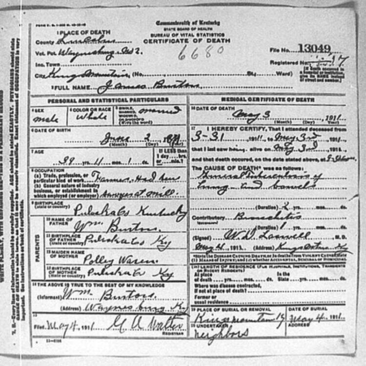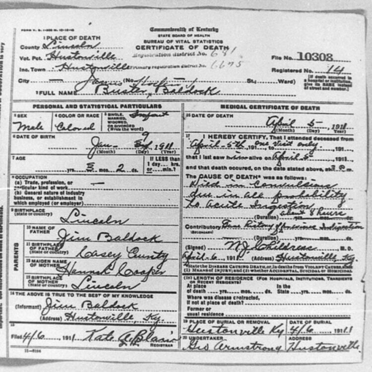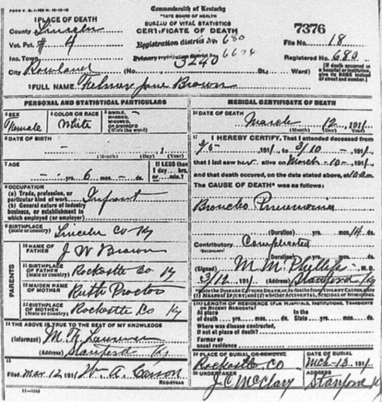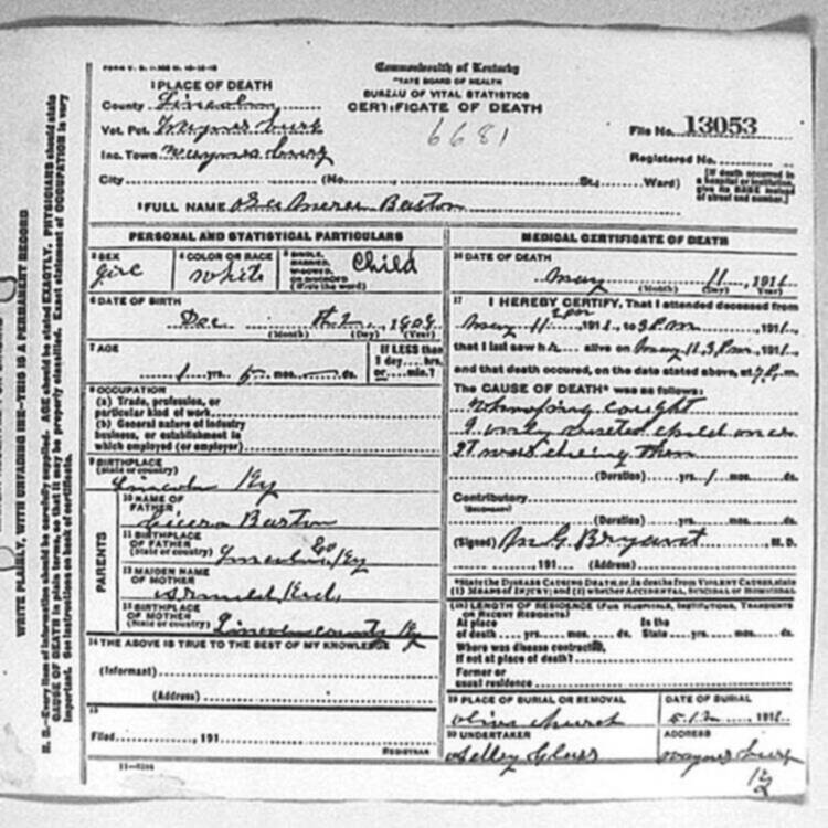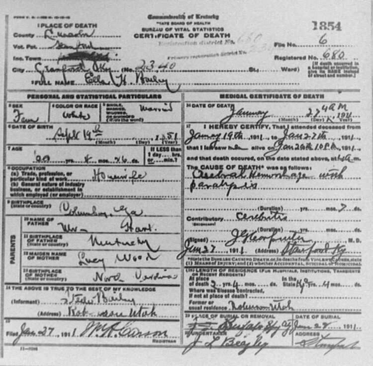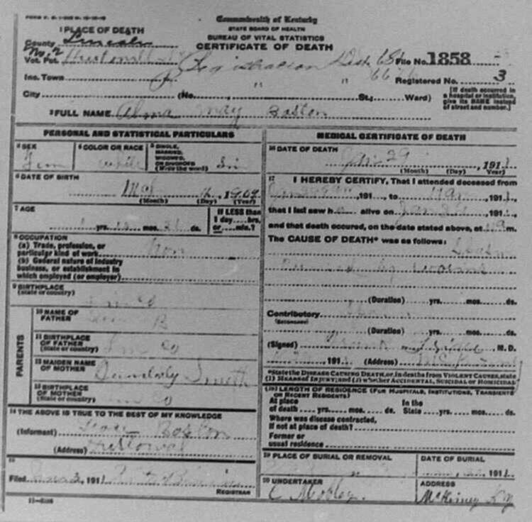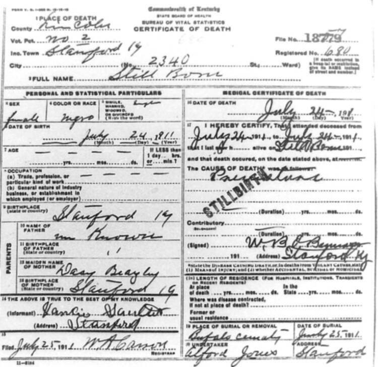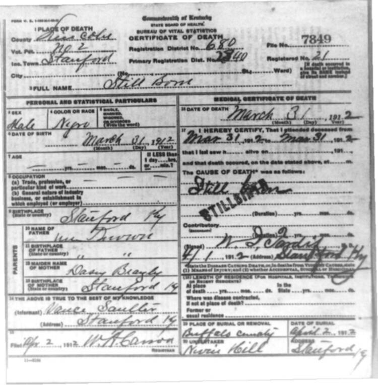 | BUNCH (stillborn) | CORA (mother) | 06/04/1912 |