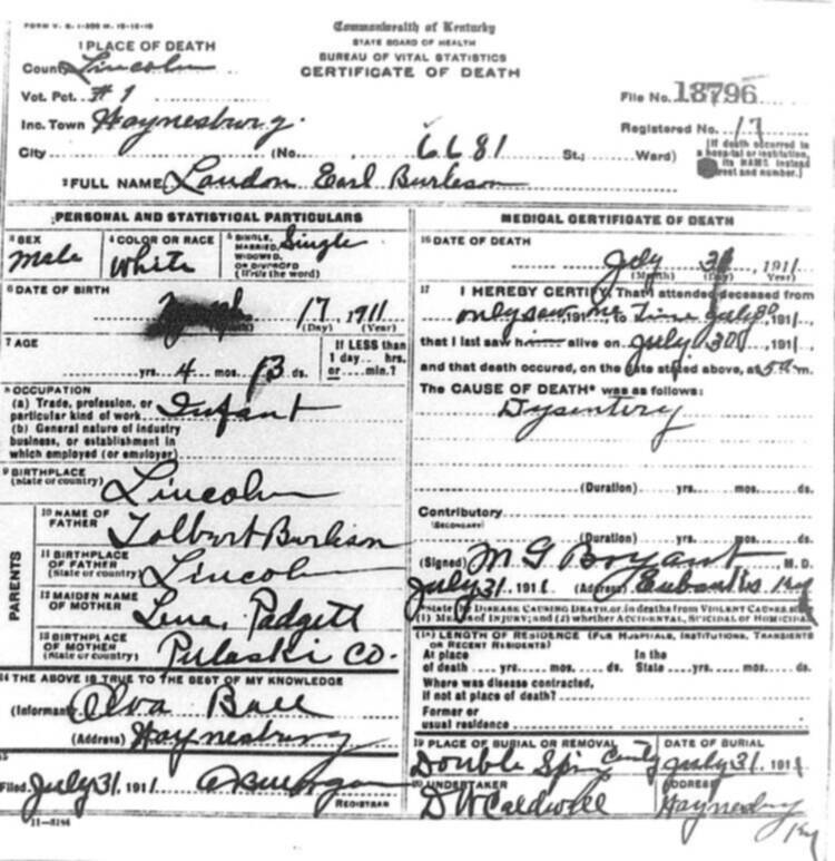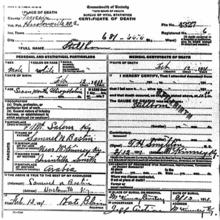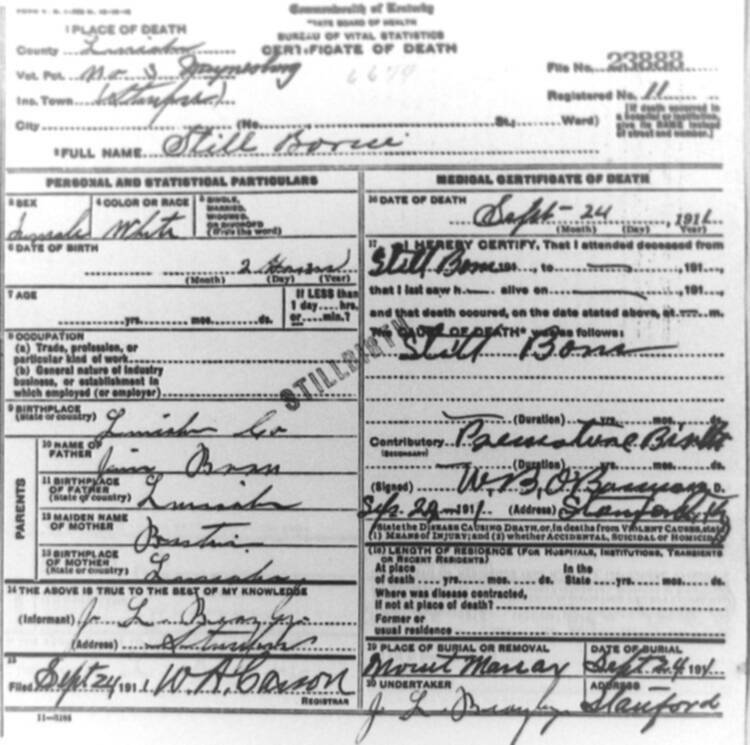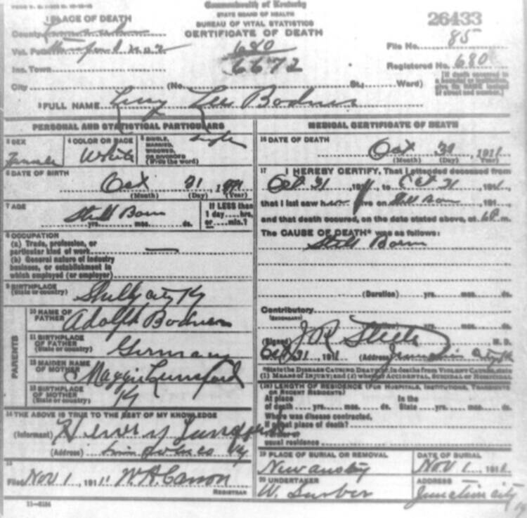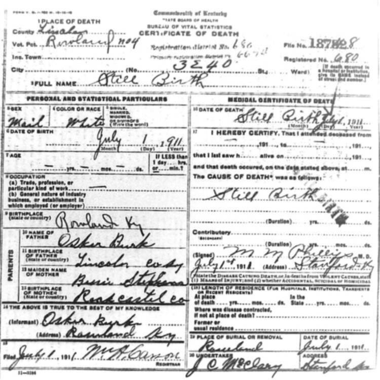 | BURK (stillborn) | OSKER (father) | 07/01/1911 |