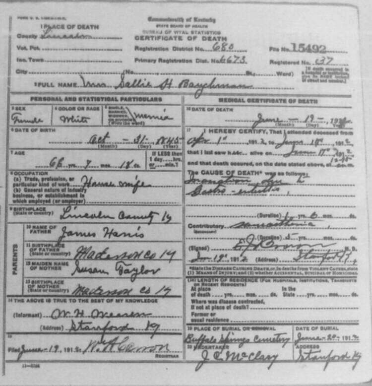 | BAKER | ALLIE | 01/18/1913 | 2157 |