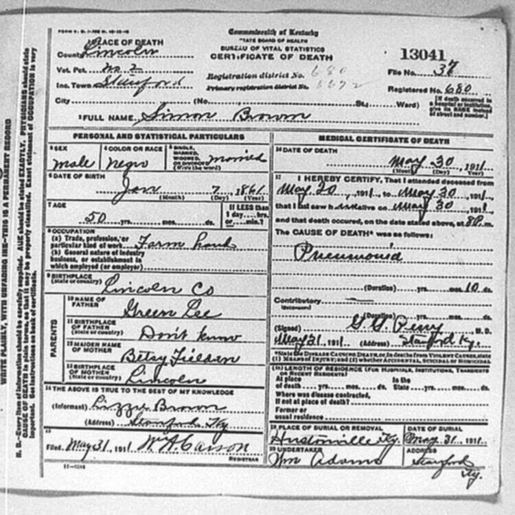 | BROWN | ULLISSUS E. | 01/02/1920 | 1789 |