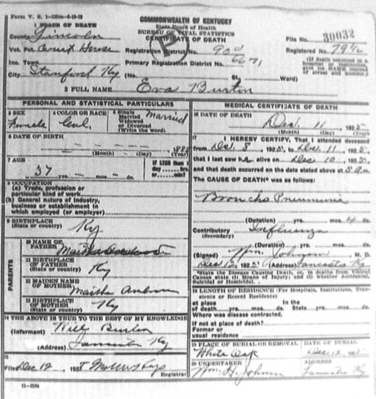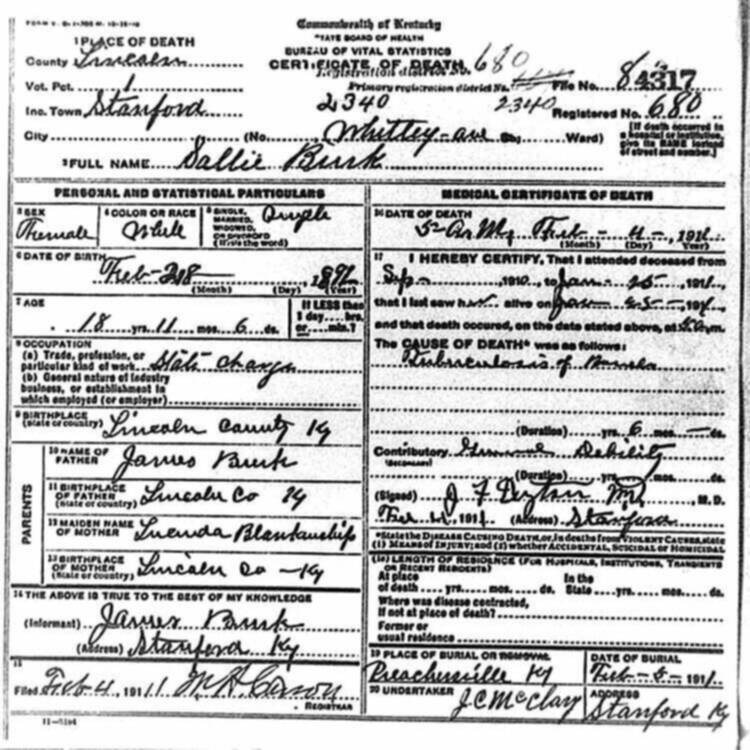 | BURBRIDGE | KATIE | 12/14/1921 | 27473 |